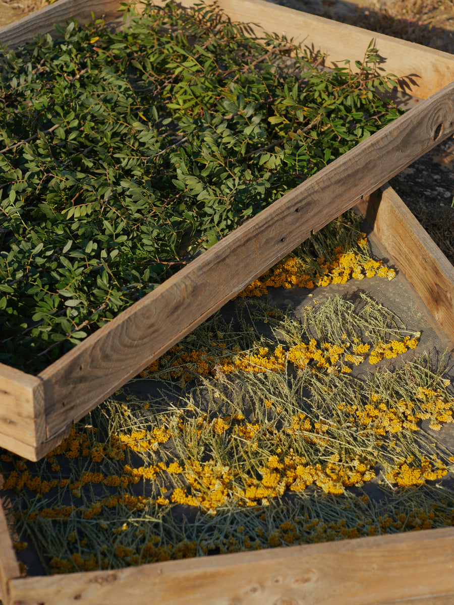 Sans formation préalable, mais avec l’intuition que notre ferme pouvait devenir le point de départ d’un modèle novateur pour l’île, nous avons lancé ce projet de valorisation des plantes extrêmophiles de Méditerranée en désirant par-dessus tout aider ceux sans lesquels il n’y aurait pas de soins et de parfums : les Agriculteurs.